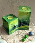 2 drewniane świeczniki (tealight) - z ręcznie malowanym pejzażem.