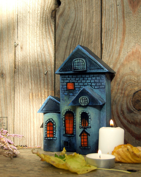 Wymiary domku (+/- 1 cm): wysokość 20 cm, szerokość 13 cm, przekrój/grubość 8 cm.
