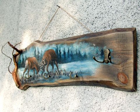 W Leśnym Królestwie - pejzaż malowany na desce, wieszak